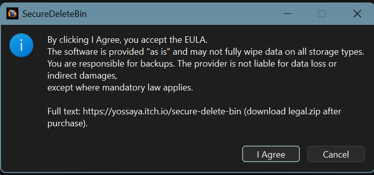 The tool is used by simply opening the exe file. First there will be an EULA note that you have to aggree to if you want to install it (this is because we're deleting things from your bin here, some safety for me).