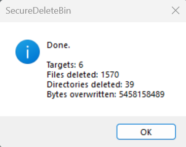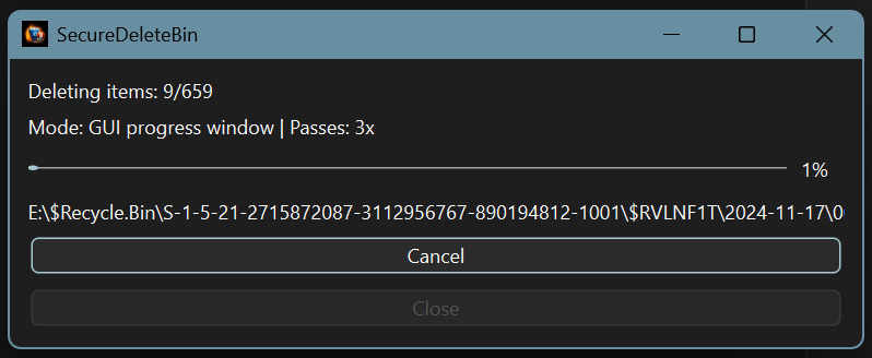 After selecting the deletion option (3x or 5x) a GUI is shown with the progress of deletion: